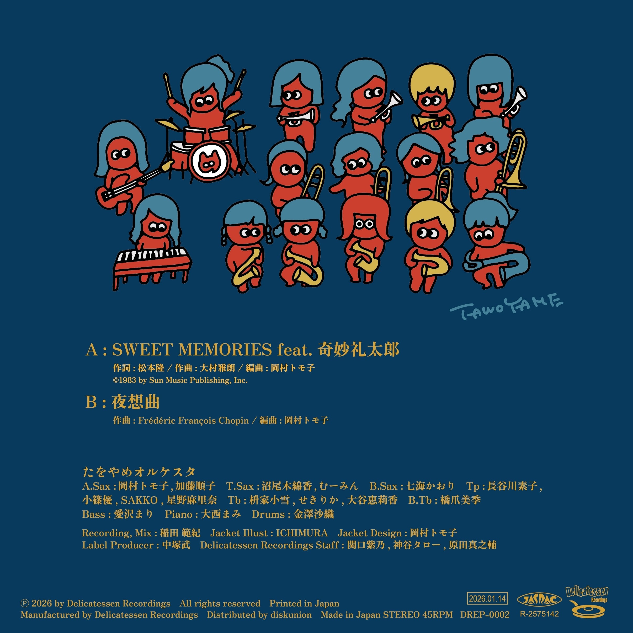 たをやめオルケスタ - SWEET MEMORIES feat.奇妙礼太郎 / 夜想曲 【7inchレコード】 ★先行予約(特典ステッカー付き)★ | Delicatessen Recordings デリカテッセンレコーディングズ